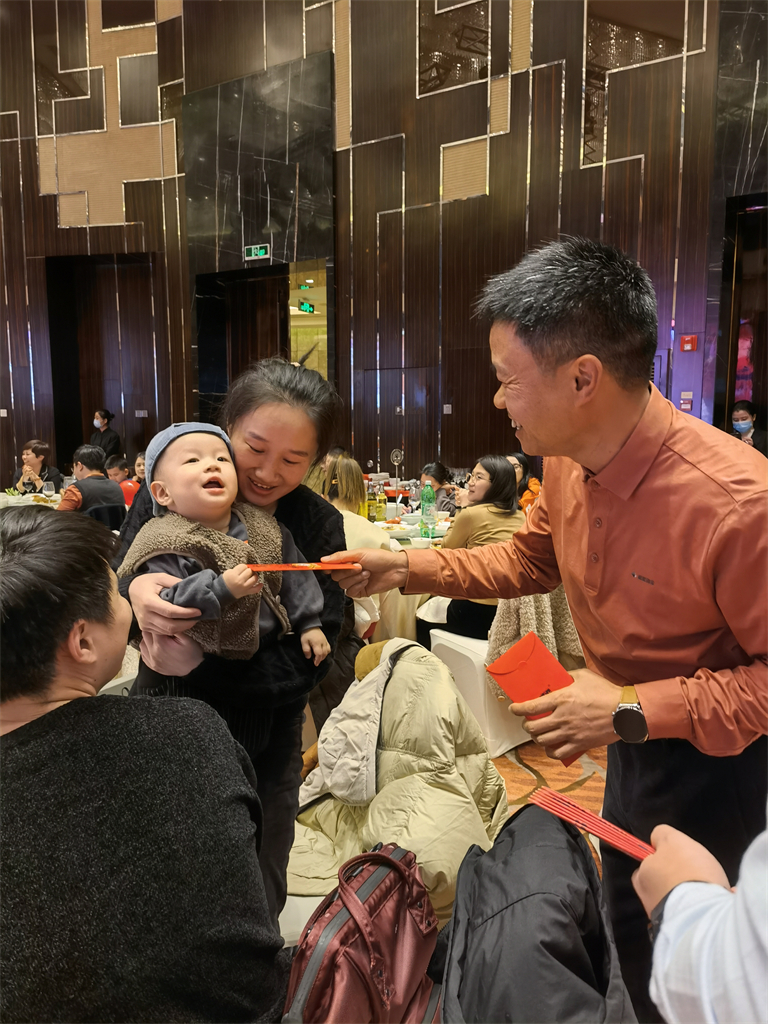 感恩,共创是本次迎新晚宴的主题,晚宴邀请了员工家属,王董首先致辞,欢迎了到场的嘉宾和各位家人,感谢大家对公司的支持。